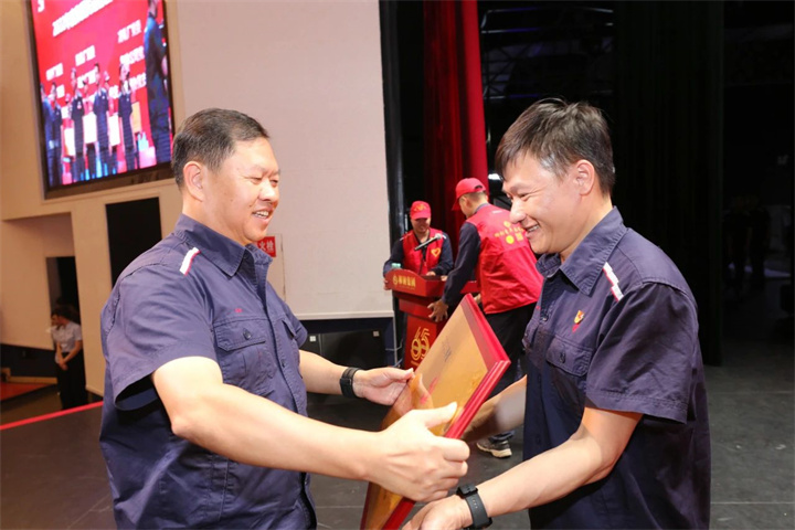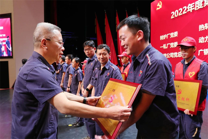 集團(tuán)領(lǐng)導(dǎo)上臺為獲得先進(jìn)基層黨組織、宣傳文化工作優(yōu)秀單位、優(yōu)秀黨務(wù)工作者、優(yōu)秀共產(chǎn)黨員的集體和個(gè)人頒獎。