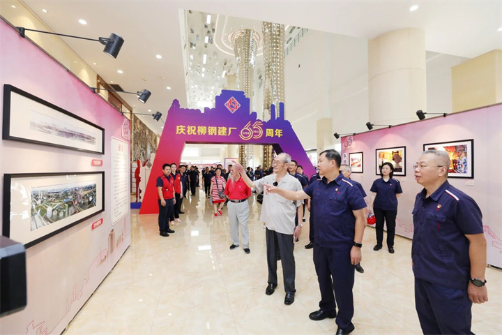 會前,李斌、閻駿等集團(tuán)領(lǐng)導(dǎo)與1958年入廠老職工代表,黨內(nèi)先進(jìn)代表,勞模代表等各界別人士代表先后參觀了鋼鐵先鋒黨員淬煉線、柳鋼展覽館以及柳鋼集團(tuán)65周年發(fā)展歷程圖片及書畫攝影作品展。